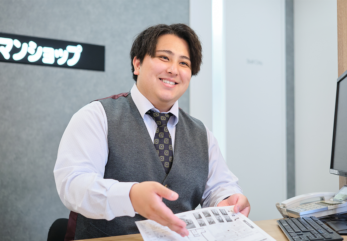 ときには難しい条件のお客様もいらっしゃいますが、理想のお部屋が見つかったときの「ありがとう」という言葉は、この仕事ならではの喜び。契約から鍵渡しまで責任を持って対応し、「あなたに担当してもらってよかった」と言っていただける瞬間が、日々のやりがいにつながります。お客様との出会いを通じて、人間力を磨き、成長できる仕事です。
